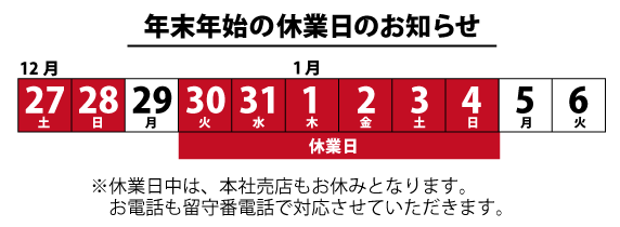 年末年始の休業日のお知らせ