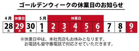 ゴールデンウィークの休業日のお知らせ